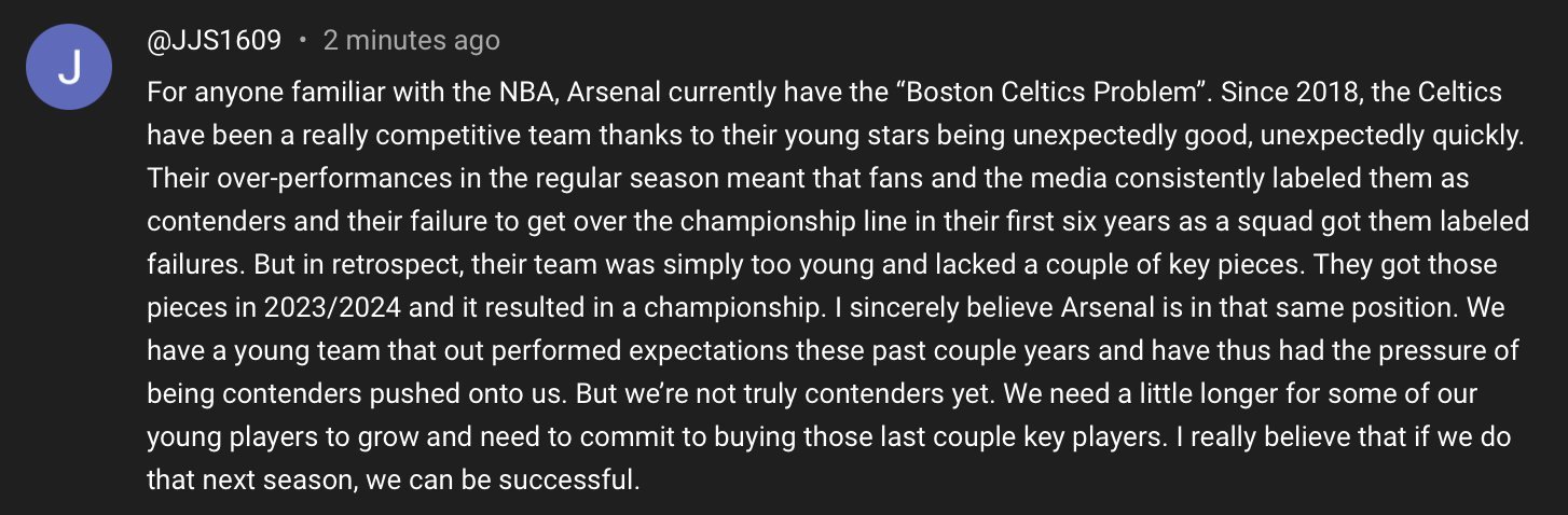 Arsenal’s squad is on the cusp of something special, but much like the Celtics before their title run, they are lacking that final push.