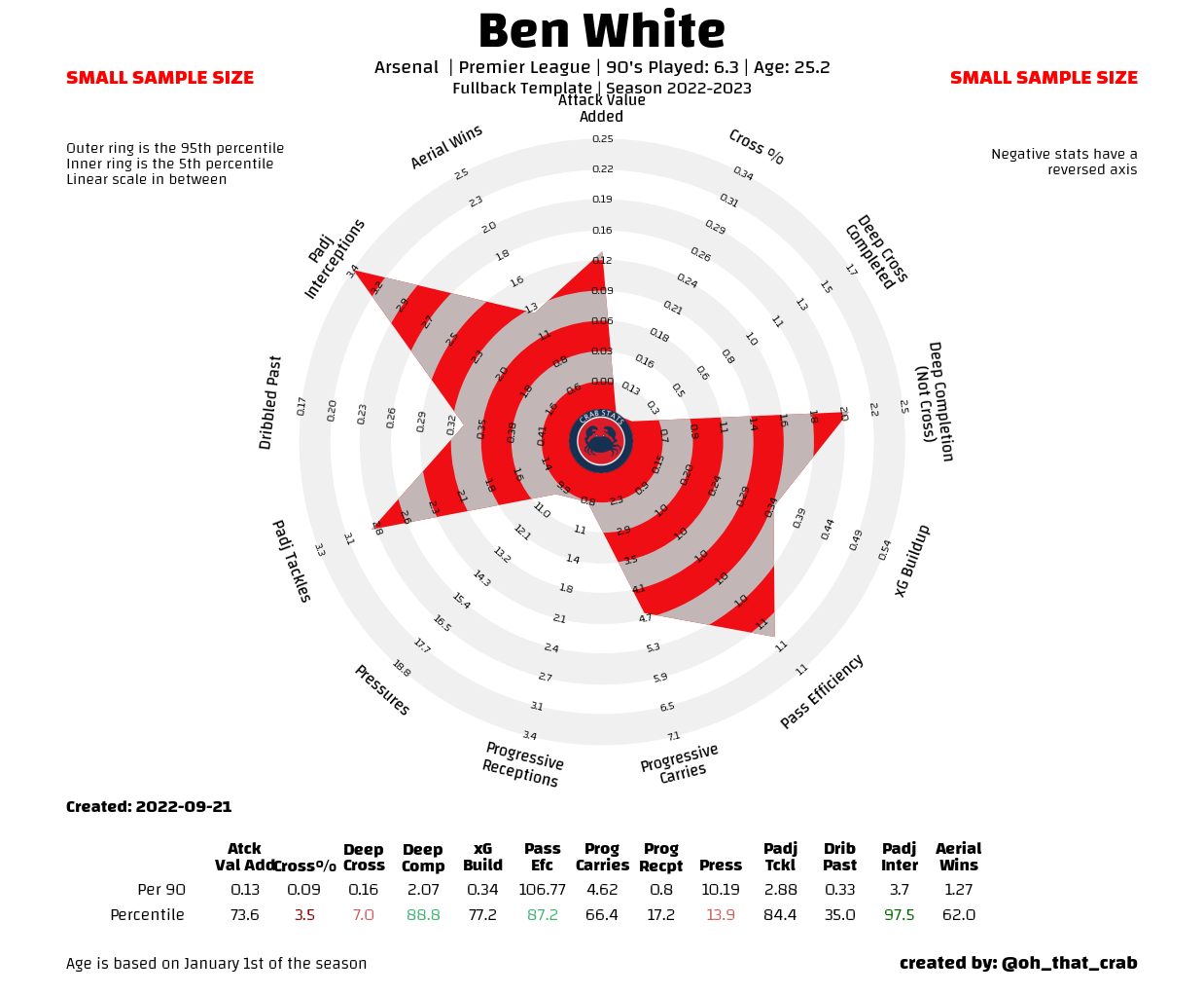 (Ben White’s stat radar courtesy Scott Willis – Ben White’s underrated impact – by Scott Willis (substack.com))As the old adage goes, every cloud has its silver lining, and football remembering the bad stuff is no exception. This year we’ve seen Arsenal approach games with an unrelenting and merciless decisiveness. Against Crystal Palace on the opening day of the season, Arsenal took control of the game from the first minute. The Eagles didn’t have a kick for the opening half an hour. Arsenal’s performance against Brentford two weekends ago was one of the most dominant displays the team has produced in recent memory.