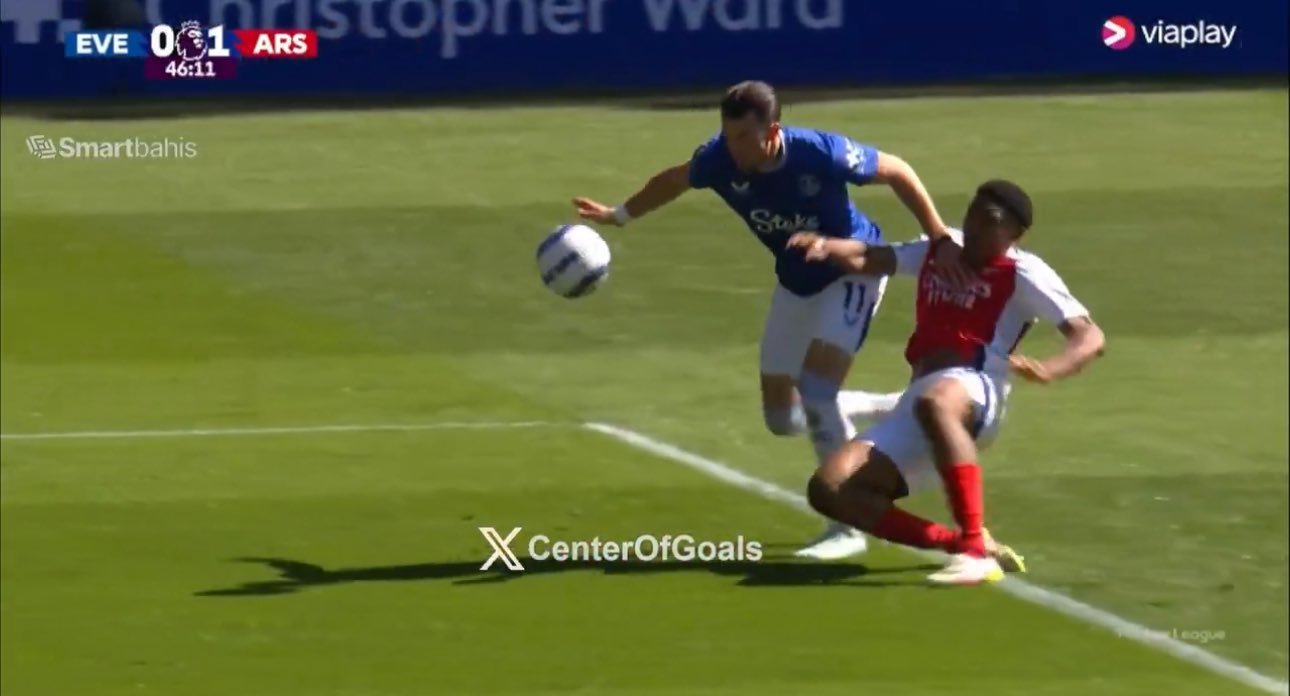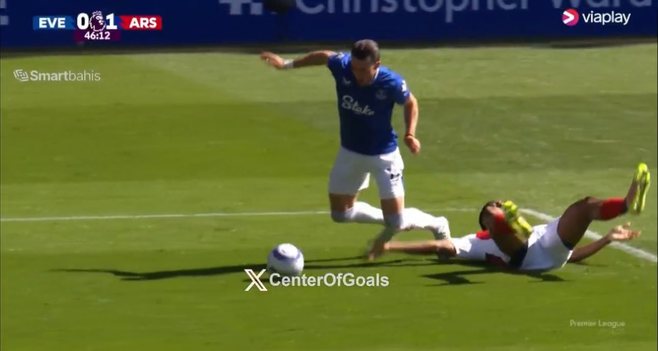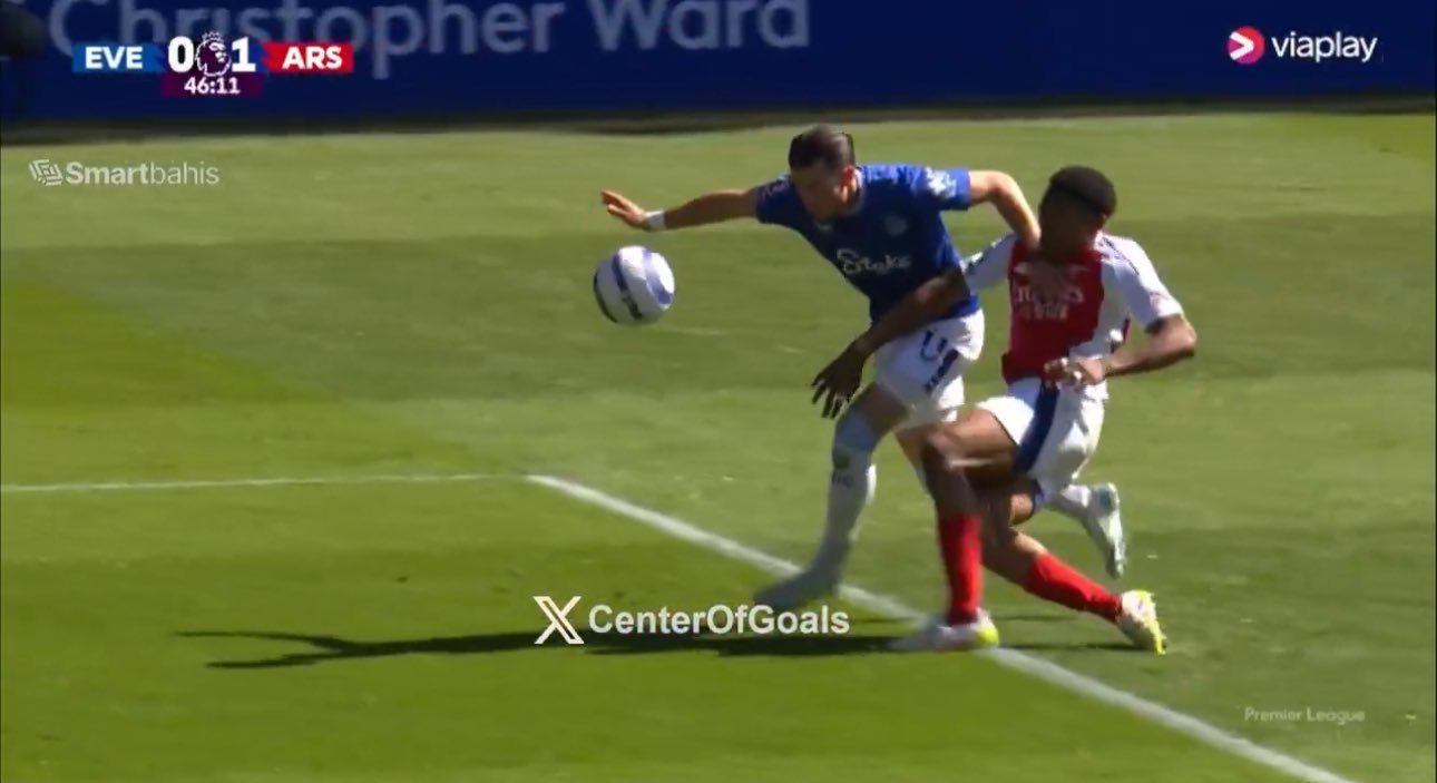 The moment came just minutes into the second half. Arsenal, having taken the lead through Leandro Trossard, looked to consolidate against a physical but limited Everton side. Then came the long diagonal ball. Jack Harrison went down under pressure from Myles Lewis-Skelly near the edge of the box. Contact? Yes. Enough for a penalty? Not even close.