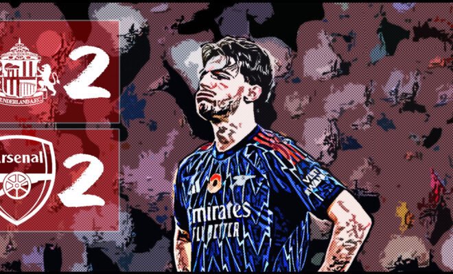The scoreline said otherwise because Sunderland turned the match on two high, simple deliveries that created chaos in Arsenal’s area. Ballard scored after a high delivery wasn’t cleared at the first contact. Nordi Mukiele won the first header, Ballard stayed alive to the second, and the finish was emphatic. Sunderland’s late goal came from another direct ball into the box. Ballard rose again, redirected, and Brobbey beat both centre-back and goalkeeper to the bounce for 2-2.